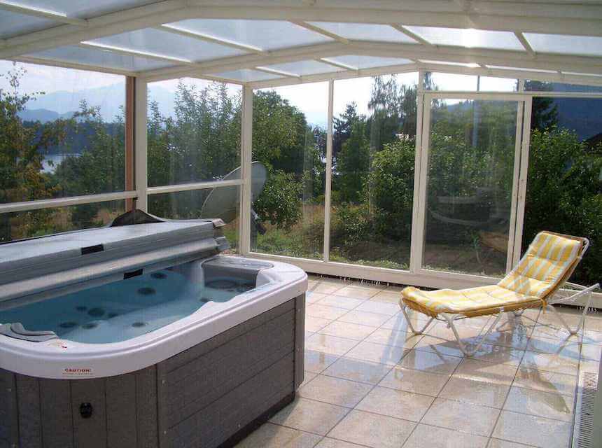 Witterungsunabhängig baden unter einer Outdoor-Whirlpoolüberdachung